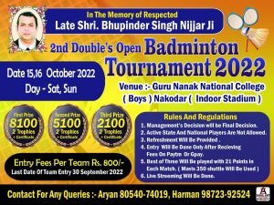 (Please subscribe email notification for upcoming North India Badminton Tournaments. Click here to Subscribe)