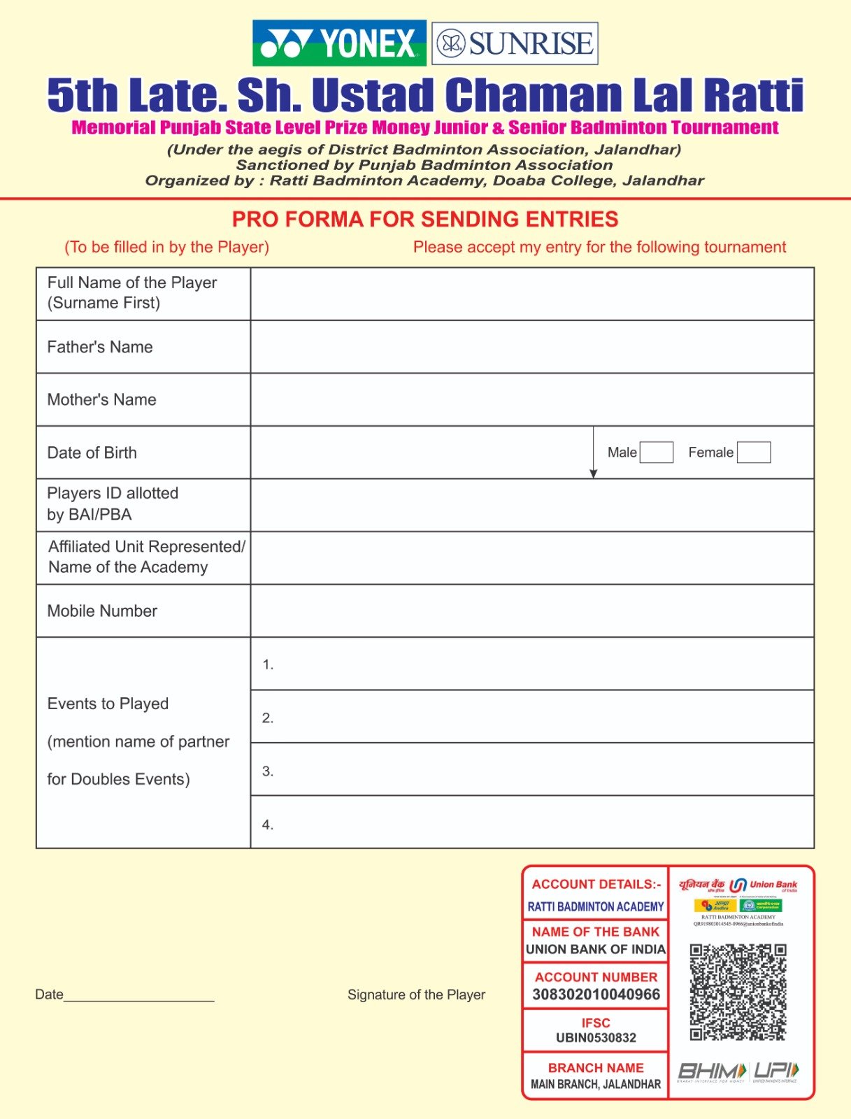 (Please subscribe email notification for upcoming North India Badminton Tournaments. Click here to Subscribe)