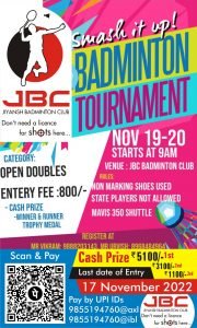(Please subscribe email notification for upcoming North India Badminton Tournaments. Click here to Subscribe)